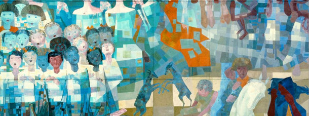 Arte: Pedaço do painel Guerra e Paz, de Cândido Portinari.